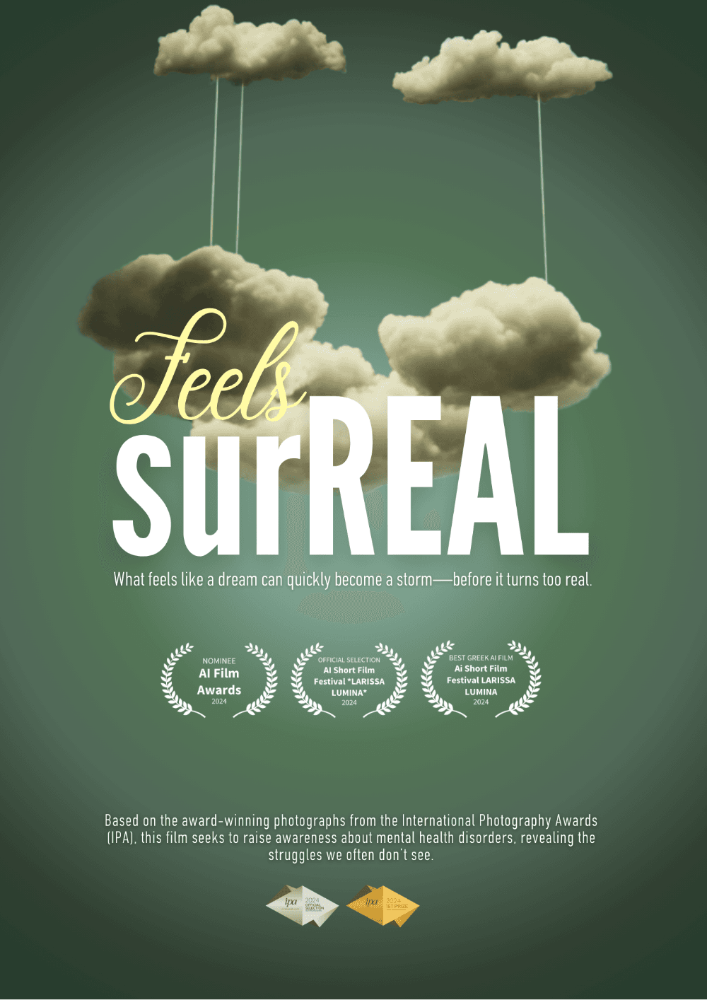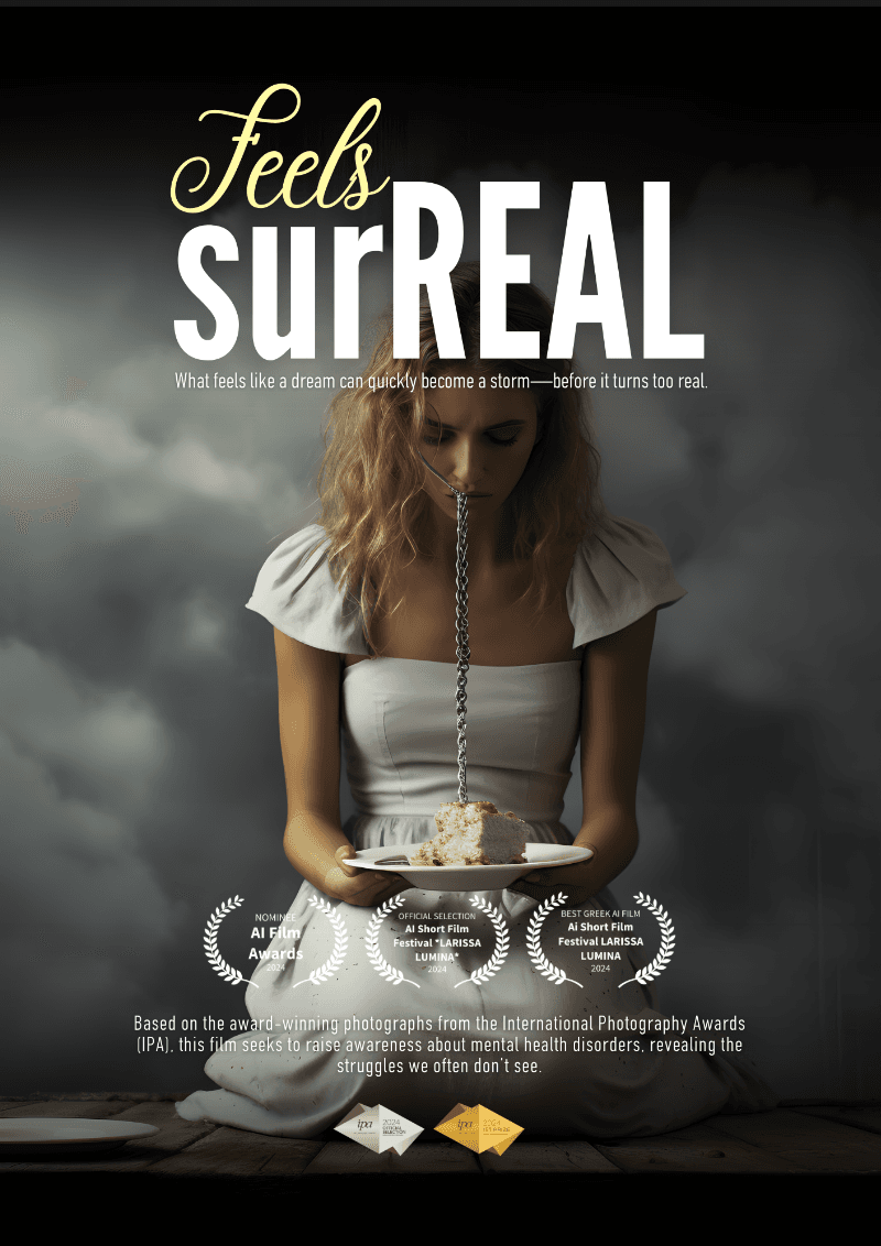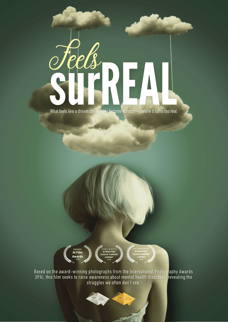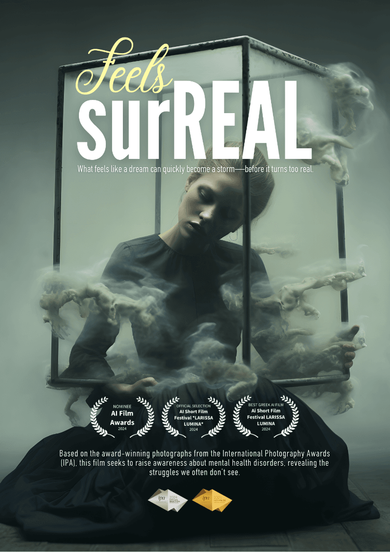 While the short film Feels surREAL premiered in 2024, the official posters were designed in August 2025 as part of the project’s extended visual journey. These posters serve as alternate interpretations and promotional artworks, expanding the narrative and aesthetic of the film. They are both standalone art pieces and part of the multi-format evolution of Feels surREAL.