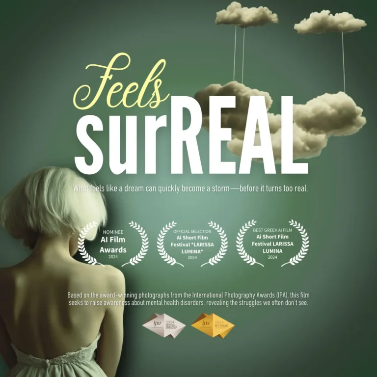 Amidst such incredible talent, I was honored not only to have my film, “Feels surREAL,” screened at JOIST but also to receive the award for “Best Greek AI Film.” This award recognizes the best AI-generated short film created by a Greek filmmaker, and receiving it was truly an unforgettable moment. My film delves into the often invisible aspects of mental health disorders, offering a surrealistic glimpse into the inner struggles that are frequently hidden from view. With “Feels surREAL,” I aimed to transcend traditional storytelling by utilizing AI to highlight significant social issues, demonstrating how technology can amplify our understanding and empathy towards real-world problems.
